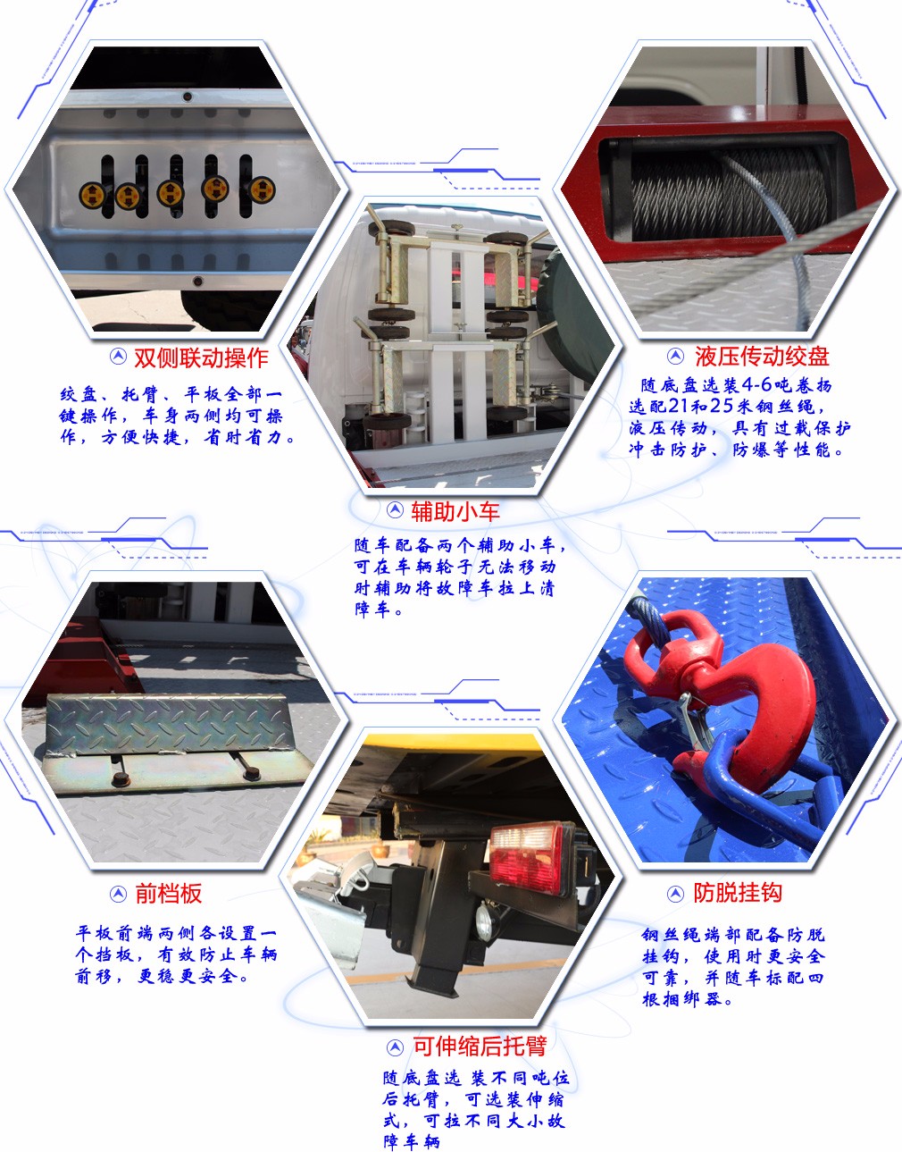 | 改裝工藝: | 5噸上裝,5噸卷揚,4噸后拖臂,25米鋼絲繩,板長5.6米,寬2.3米。雙側(cè)聯(lián)動操作,全液壓翻轉(zhuǎn)板,新款上裝(不要后托臂減三千,手動翻轉(zhuǎn)版減三千)喊話器一套,小車一套,四根捆綁帶 |