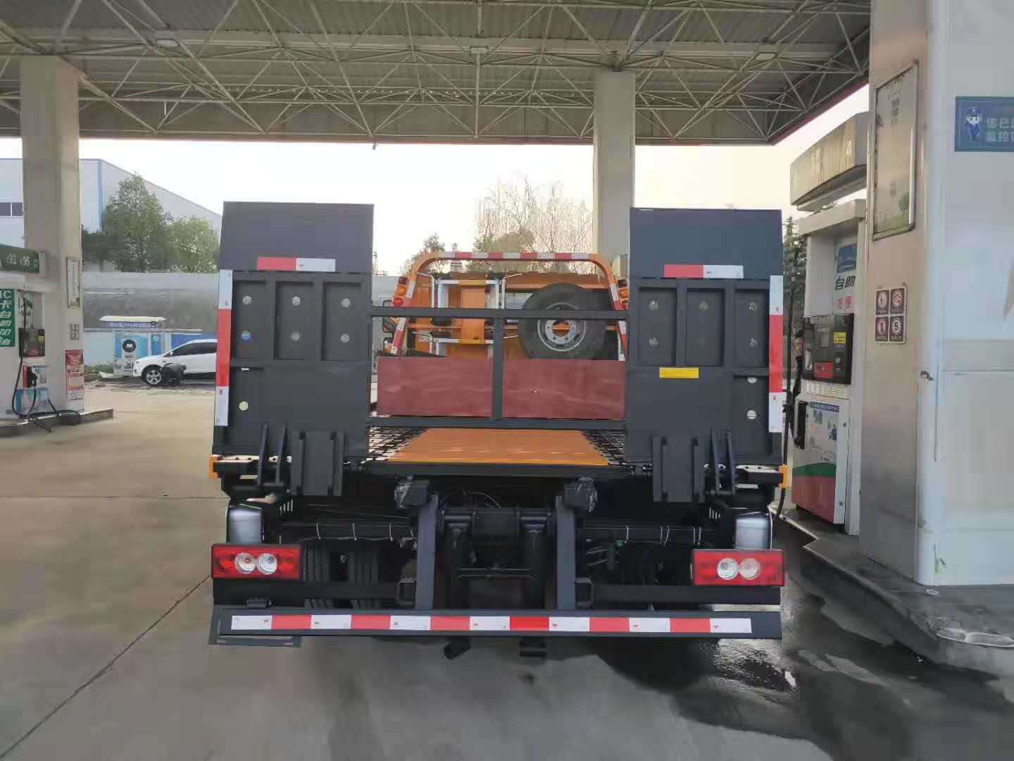 上裝配置:平板采用3P2A沖壓鋼板,具有更加出眾的平衡性,平板長4.2米,寬2.3米。背3噸,拖3噸。多路閥平衡閥采用意大利原裝(海德)進口;液壓缸佛山(海戰(zhàn)力)采用德國技術(shù),雙層鋼絲液壓膠管,全進口密封圈。分體模壓拼焊面板,耐磨、防滑抗阻力強。雙側(cè)聯(lián)動操作系統(tǒng),后工作燈2只,一個4噸液壓絞盤(25米鋼絲繩)一個洗手箱,2個小車,L型抱胎架1對,4根捆綁帶,后隱藏液壓伸縮式尾板,或尾部翻轉(zhuǎn)(可定做中間加長0.5米),可伸出長度為1.1米,應(yīng)對較長車型的SUV和越野車型。上裝所有液壓元件均采用進口部件,可選裝國產(chǎn)件。