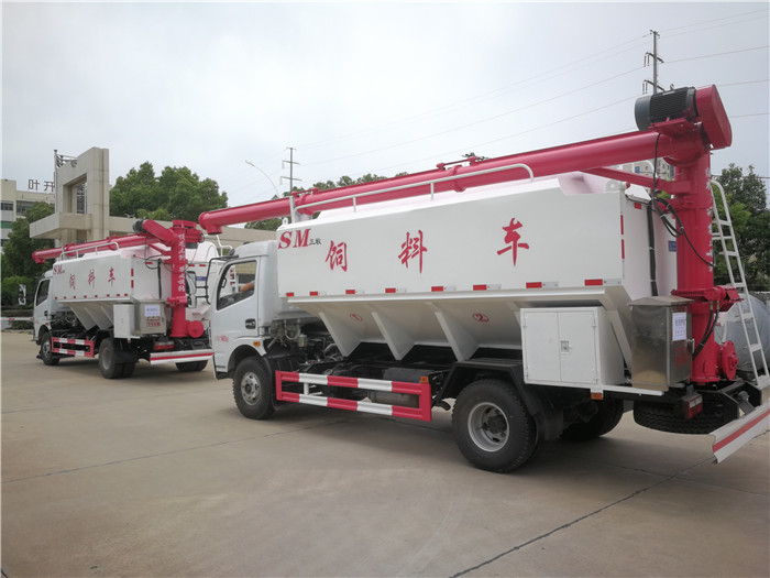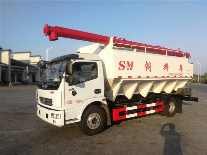 散裝飼料車就是能夠同時裝載運(yùn)輸13種不同飼料,并能通過電機(jī)螺旋輸送系統(tǒng)實現(xiàn)向7.6m高的儲料塔中自動卸料的專用飼料運(yùn)輸車。