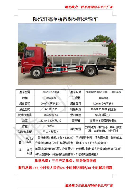 20方陜汽單橋散裝飼料運(yùn)輸車