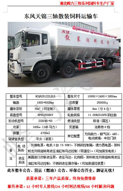 30方東風(fēng)天錦小三軸散裝飼料運(yùn)輸車