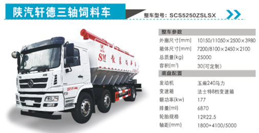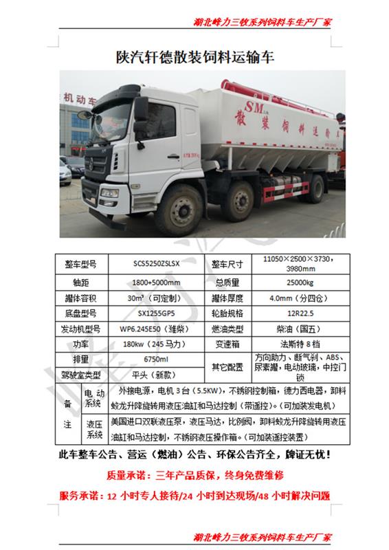 30方陜汽小三軸散裝飼料運(yùn)輸車